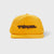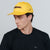 Yellow golfer cap made of drill. It has an adjustable snapback. It comes with embroidered designs on the front and one side.