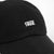 Black cap with a classic silhouette, logo printed on the front and an adjustable strap on the back.