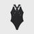 Regular-fit black bodysuit with crossed back elastic, branded straps.