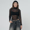 Black mesh t-shirt with a fitted silhouette and long sleeves with the logo printed on the front.