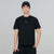 Black t-shirt with a regular silhouette, with a high-density printed logo on the front and one on the back. It has a ribbed neckline.