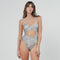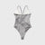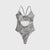 Gray bodysuit with an all-over sublimated python design. It has an inner lining and a chest opening. The logo is printed on the front.