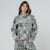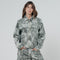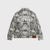 Women's gray jacket made of all-over python printed cotton drill. It features prints on the front and back and front pockets. The cuffs are adjustable with a button.