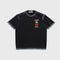 Black oversized t-shirt with airbrush effects on the cuffs, hems and neckline. It features a high-density print on the front off to the side and on the back.