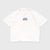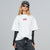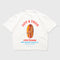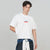Cream boxy t-shirt made of cotton with prints from the collection on the chest and back, with ribbed neckline.