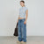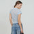Baby blue slim tee with front embroidered logo. Waistband length.