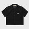 Black corduroy shirt with a boxy silhouette. The logo is embroidered on the front.