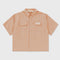 Short-sleeve button-up shirt in brown. Made of cotton with a boxy silhouette. Features a front pocket with a flap and the embroidered logo on the flap.