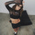Black mesh skirt. It has a strap to adjust the length on one side.