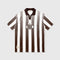 Men's T-shirt with an oversized silhouette. It features a continuous all-over white and brown striped design. The collar is knitted. The logos are printed in high-density on the front and back.