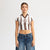 Women's slim-fit T-shirt. Features high-density logo prints on the front and back. It features a continuous all-over white and brown striped design. The neckline is knitted.