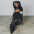 Black long-sleeved top made of lycra with a small cut out on the chest and a branded elastic base. It has long sleeves with thumbholes.