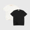 Our newest essential regular silhouette tees in a pack of 2, in black and ivory  They are must-have, basic items a round neckline and short sleeves. They have our logo embroidered a lower corner and graphic print on the upper back.