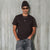 Brown t-shirt with a regular silhouette and ribbed neckline. It features two high-density printed logos, one on the front and one on the back.