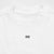 White ribbed, fitted, short t-shirt. It has one printed logo on the front and another on the back.